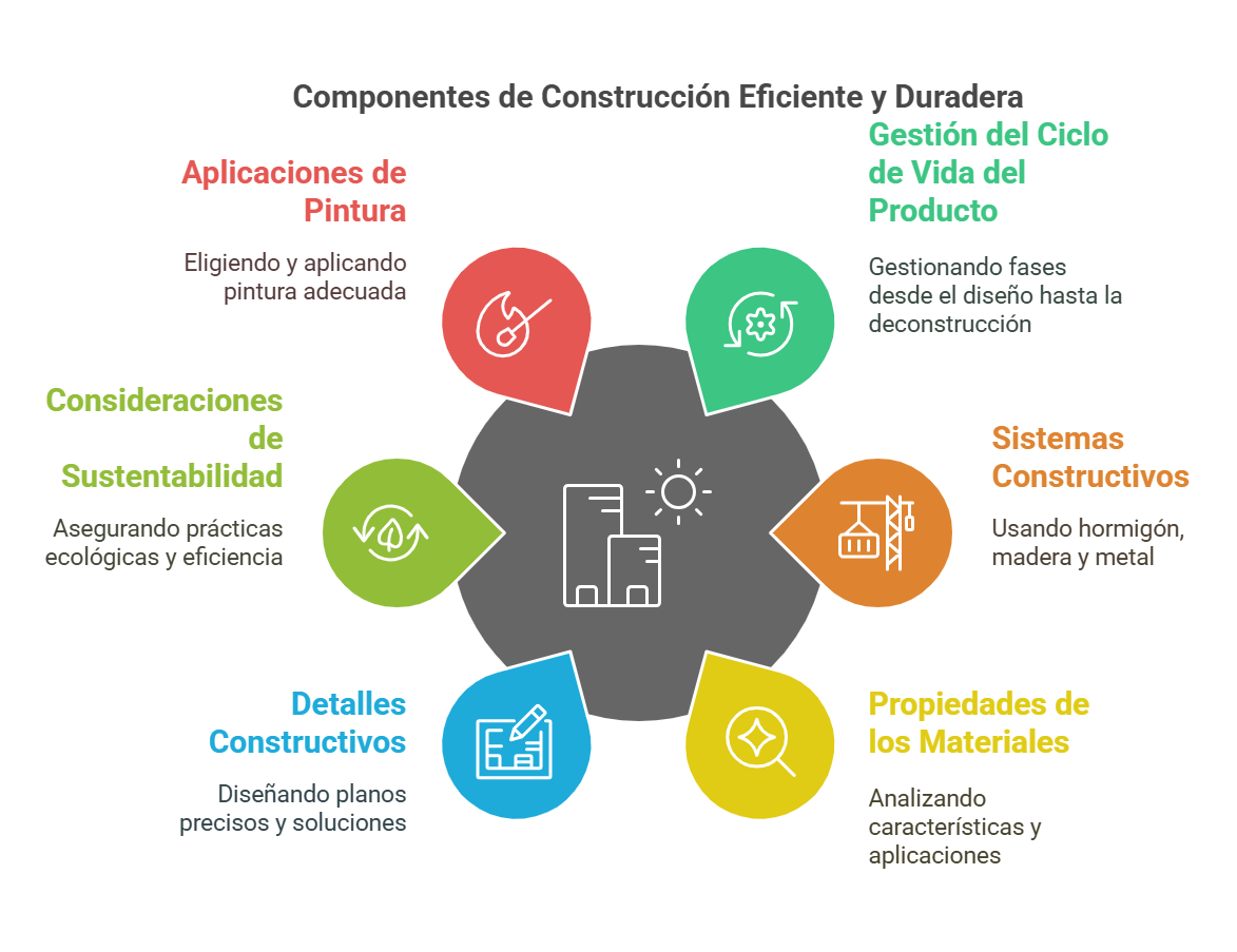 En esta sesión, nos proponemos desarrollar la competencia de diseñar detalles constructivos que permitan la materialización de edificaciones conforme a las normas del dibujo técnico y al correcto uso de los materiales. Para ello, recorreremos un enfoque integral que abarque el ciclo de vida del producto en la construcción, desde la fase de proyecto hasta la deconstrucción, considerando principios de sustentabilidad y economicidad.