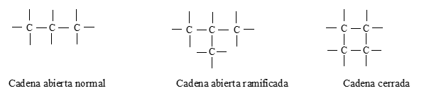 - Cadenas abiertas (acíclicas) o cerradas (cíclicas).