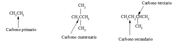 7. El átomo de carbono de una cadena puede ser primario, secundario, terciario o cuaternario según el número de carbonos a los que se une.