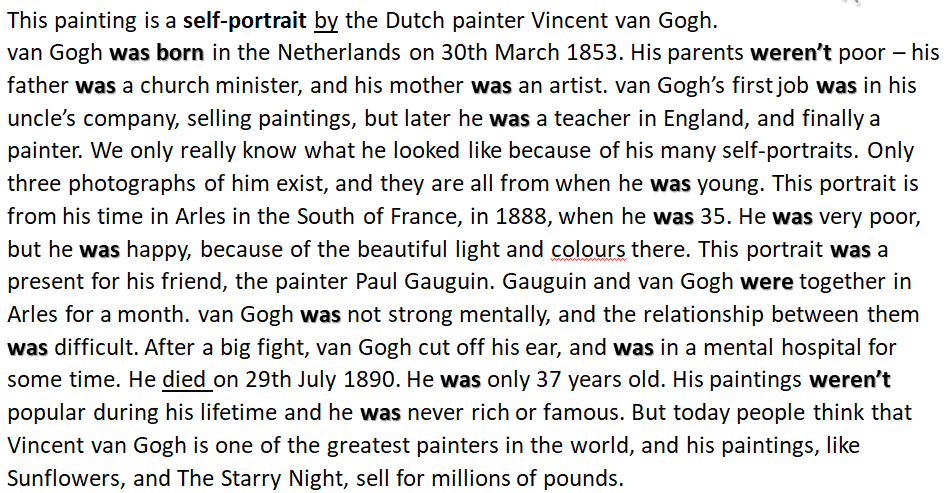 ORAL ASSIGNMENT SIX - Reading: van Gogh. Speaking: A memorable New Year's Eve