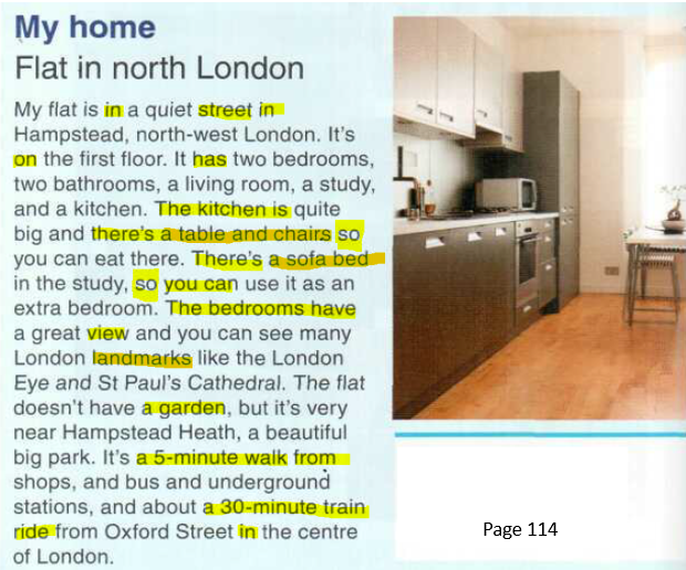 Describe your house or your flat, using the reading at page 114 as a model, and the following questions as a guide: