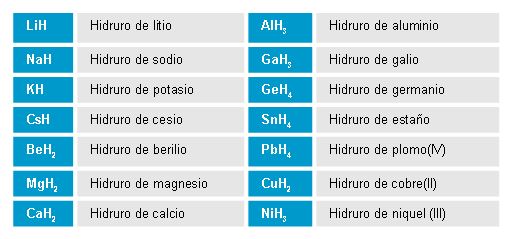 Su fórmula química contiene hidrógeno y un elemento metálico. Recuerden que en estos compuestos el H actúa con su número de oxidación -1.