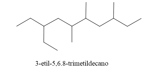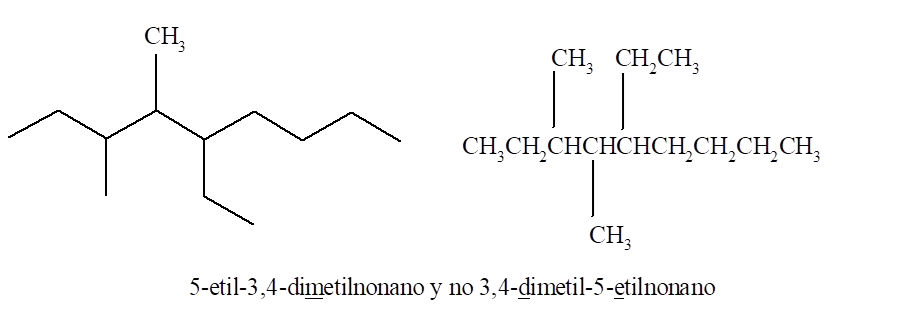 Si comenzando por ambos extremos al primer carbono sustituido le corresponde el mismo número, se busca la diferencia en el segundo carbono sustituido comenzando la numeración por aquel extremo que asigne a este último el número menor. Si la diferencia no estuviese en el segundo, se sigue con el tercero y así sucesivamente.