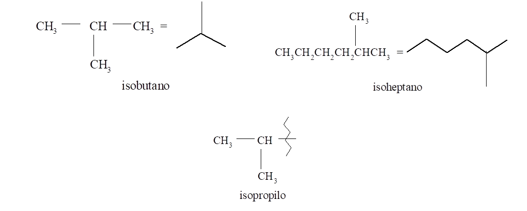 • Se llama iso al siguiente arreglo de átomos de carbono: