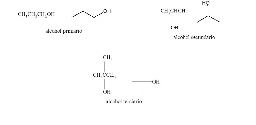 el grupo hidroxilo unido a un carbono secundario y los alcoholes terciarios son