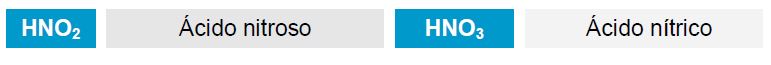 Los ácidos más comunes del nitrógeno son el ácido nitroso y el ácido nítrico, en los que el nitrógeno presenta número de oxidación +3 y +5, respectivamente: