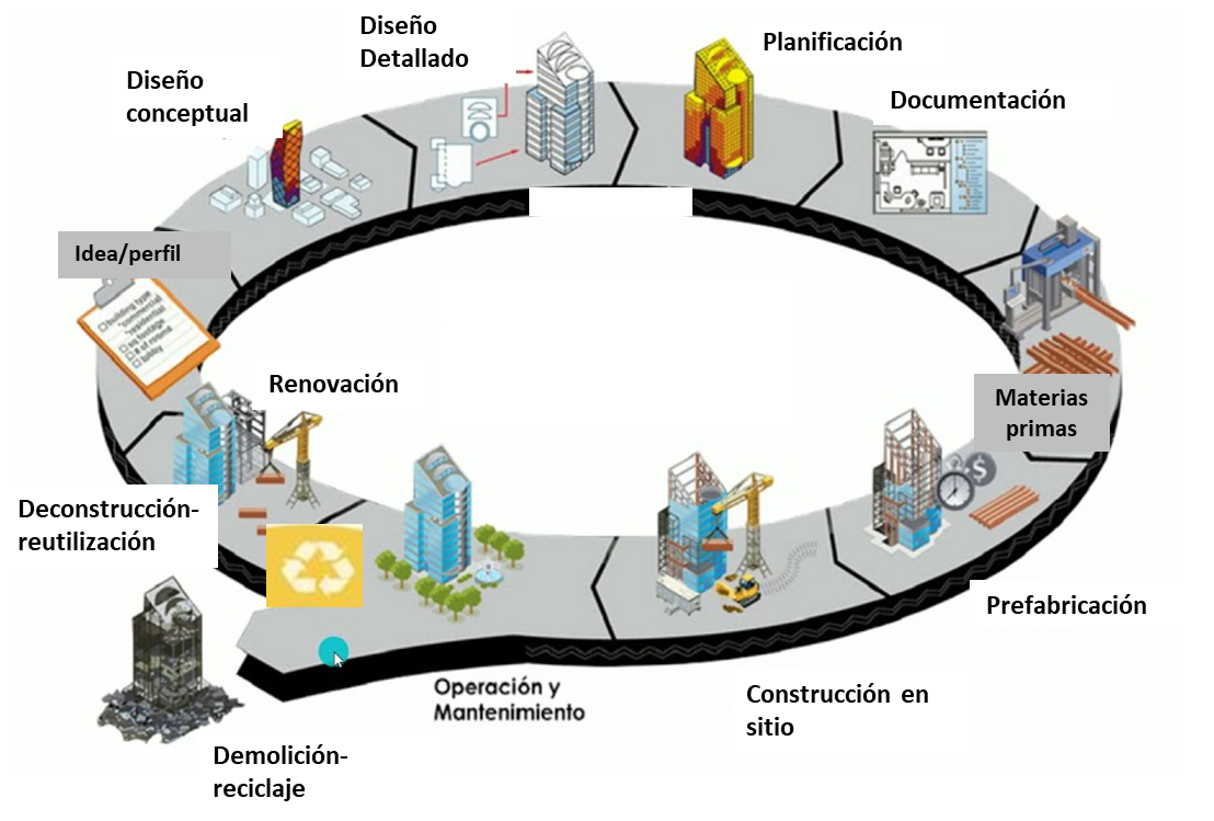 La gestión del ciclo de vida de un producto de construcción es un enfoque integral que permite evaluar el impacto ambiental y económico de los materiales y procesos constructivos desde su concepción hasta su deconstrucción. Este ciclo se compone de cuatro fases fundamentales: proyecto, construcción, operación y mantenimiento, y deconstrucción. En la fase de proyecto, se definen los materiales, sistemas constructivos y metodologías a emplear, asegurando que cumplan con criterios de sustentabilidad y eficiencia. Durante la construcción, se aplican los procesos establecidos, optimizando recursos y reduciendo residuos. La etapa de operación y mantenimiento implica el uso y la conservación de la estructura, considerando la durabilidad y las estrategias para minimizar el impacto ambiental. Finalmente, la deconstrucción busca el reaprovechamiento de materiales, promoviendo el reciclaje y la reutilización para reducir residuos y fomentar la economía circular.
